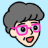 016: 浜見平団地7-4号棟前の歩道に度が強いめがね。濃いピンクのフレーム。