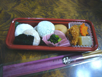 ↑お土産に買った「おもち」のお弁当。ご飯じゃなくておもちっていうのが珍しくないですか?