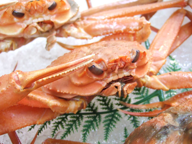 ちょっと怖い顔してますが(カニってよく見るとこんな顔なんですね・・・)、この紅松葉ガニは、紅ズワイガニと松葉(ズワイ)ガニの「あいの子」だそうです。