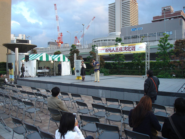 この前の土日に、うちの事務所の川向にある湊町リバープレイスで、『粉もん王座決定戦』というものが行われました。