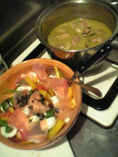 今日はグリーンカレー(レトルトにチキンを入れてボリュームを出しました)&サラダ(トマト・モッツァレラ・生ハム・パプリカ・イタリアンパセリ・黒オリーブ)です。いつも多めに作って明日も食べますf^_^;ある意味…偏りがちf^_^;明日は長野で仕事してきます