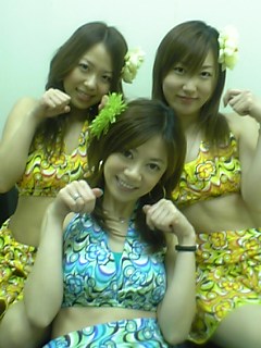 今日は湘南台で《じゃんばり天使》のお仕事をしました(^O^)コスが南国風でしょ☆休憩中に、萌系の話してたから→3人で萌ニャンポーズo(^-^)o