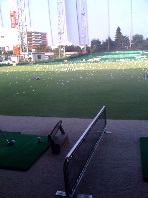 ゴルフ練習場です。隣の人→鏡のような物を置いてますが、あれは貸し出