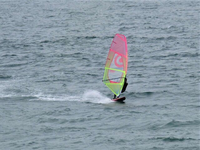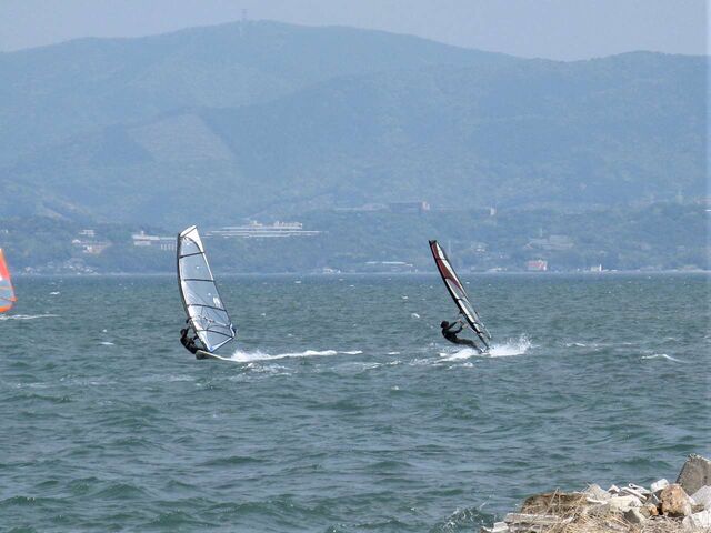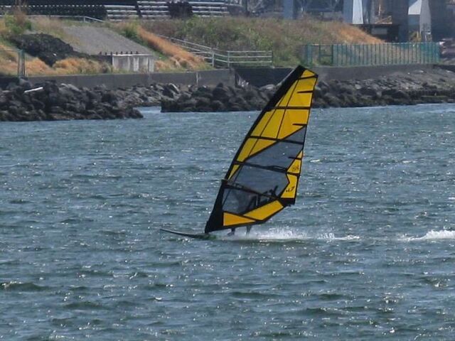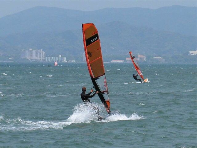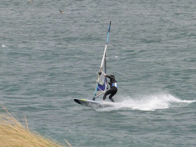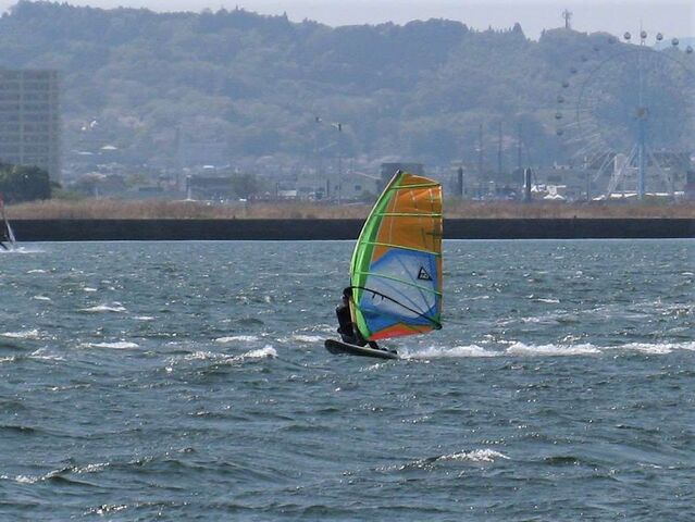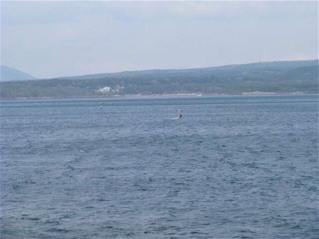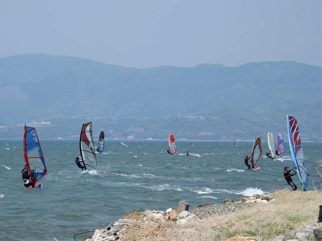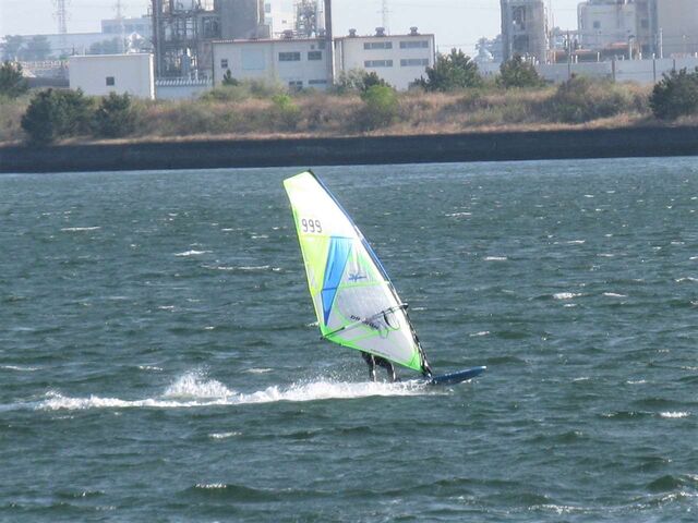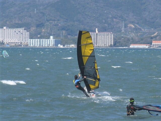 風は13時過ぎから南よりで入り始め、今年初の72を張ってスタート。始めはブローが続かず、片道走っては、タラタラ戻って次のブローを待つことの繰り返し。そのうちブローが強くなって少し続くようになってきて、予想通り15時前にはジャストオーバー。あぁ、やっぱりか・・・と思いながら、ダウンを引き直して乗り続けたものの、高所で空気が薄いのか、やたら息が切れる。