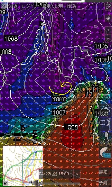 今日の予報は、そんなに強く吹かないけど、15時頃ピークに南風は入りそうなカンジ。