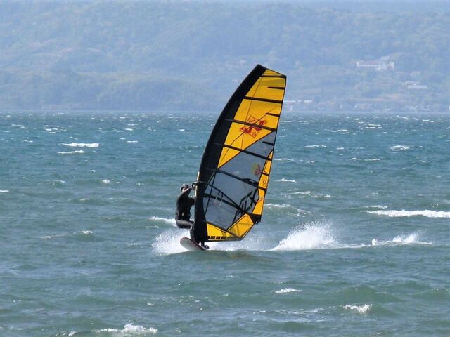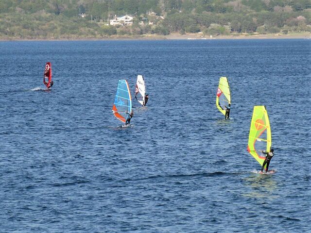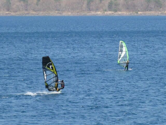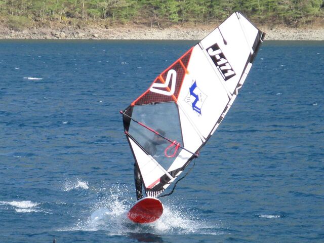 でも今日の風は、今までほど重たくないし、なんとか裁けるレベル。水面もフラットで本栖らしいコンディション。なんだかんだで15時過ぎまで乗って終了。