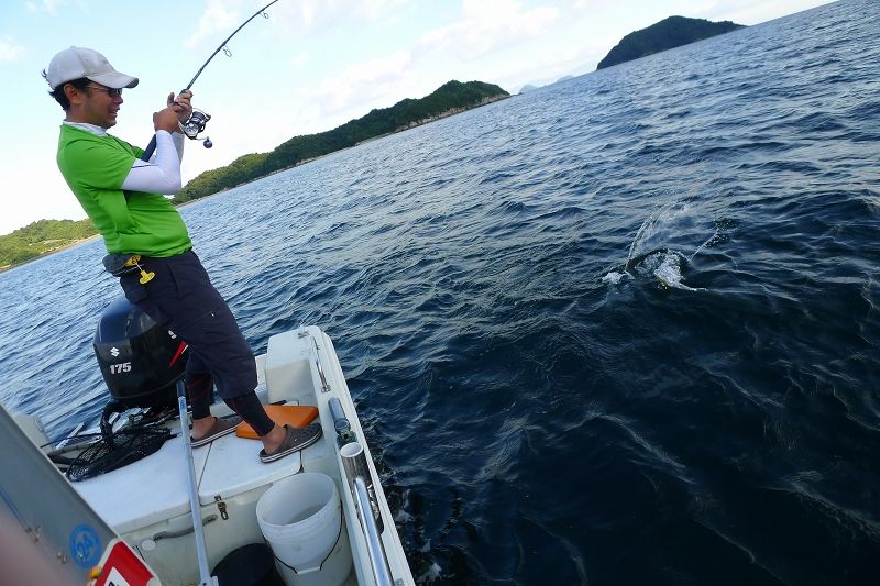 潮返し!沖の表層から誘いながら落とすと中層で良型が連続ヒット!