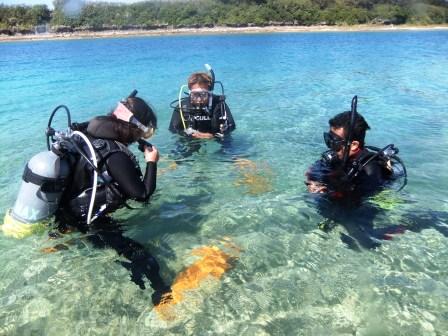 海洋実習(半日は浅瀬での練習、2日間で4回ダイビングをします。(海洋実習は2日半で終了します。)