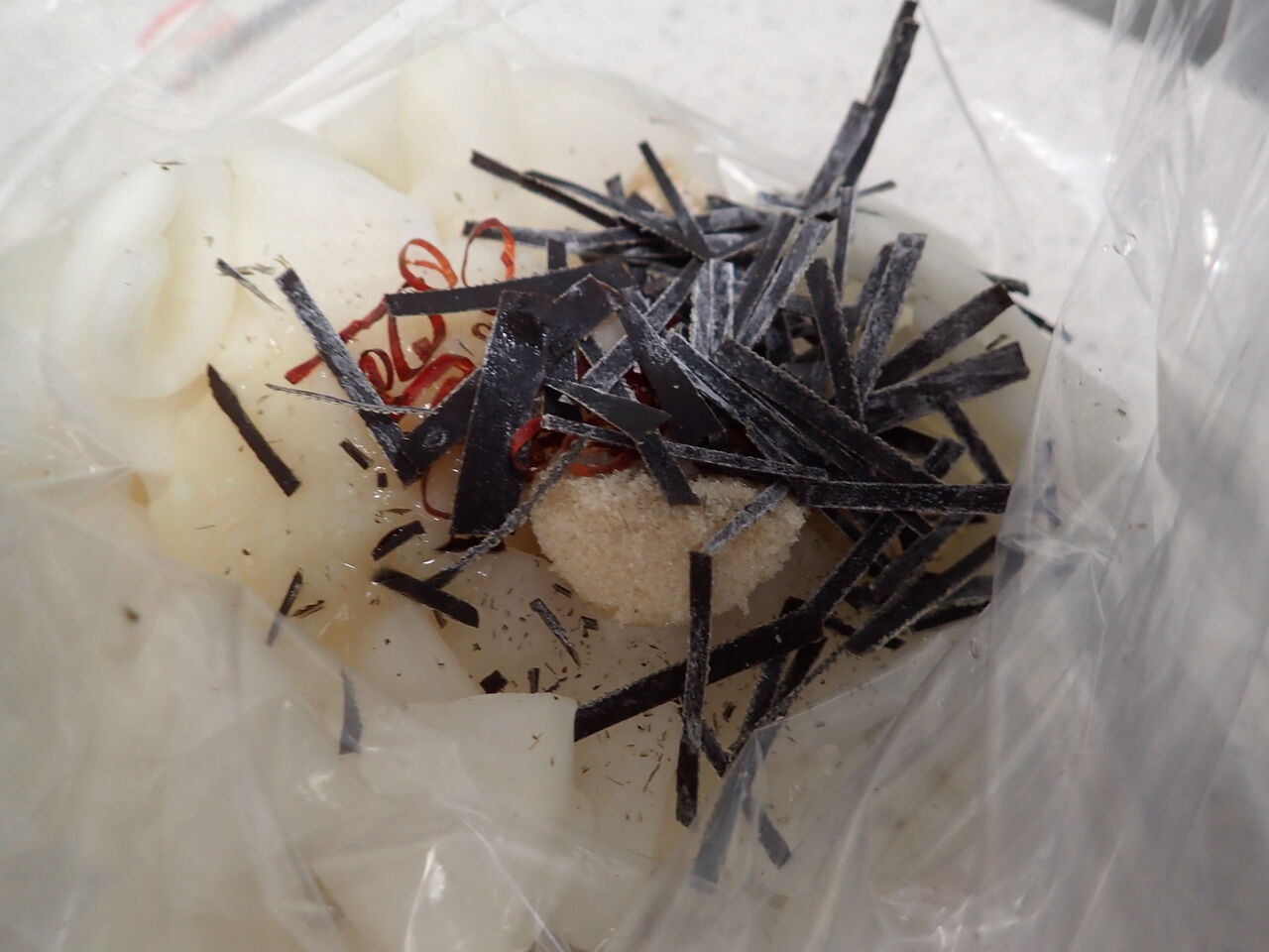 皮なしムネ肉2枚と液体塩こうじを湯煎調理袋へ