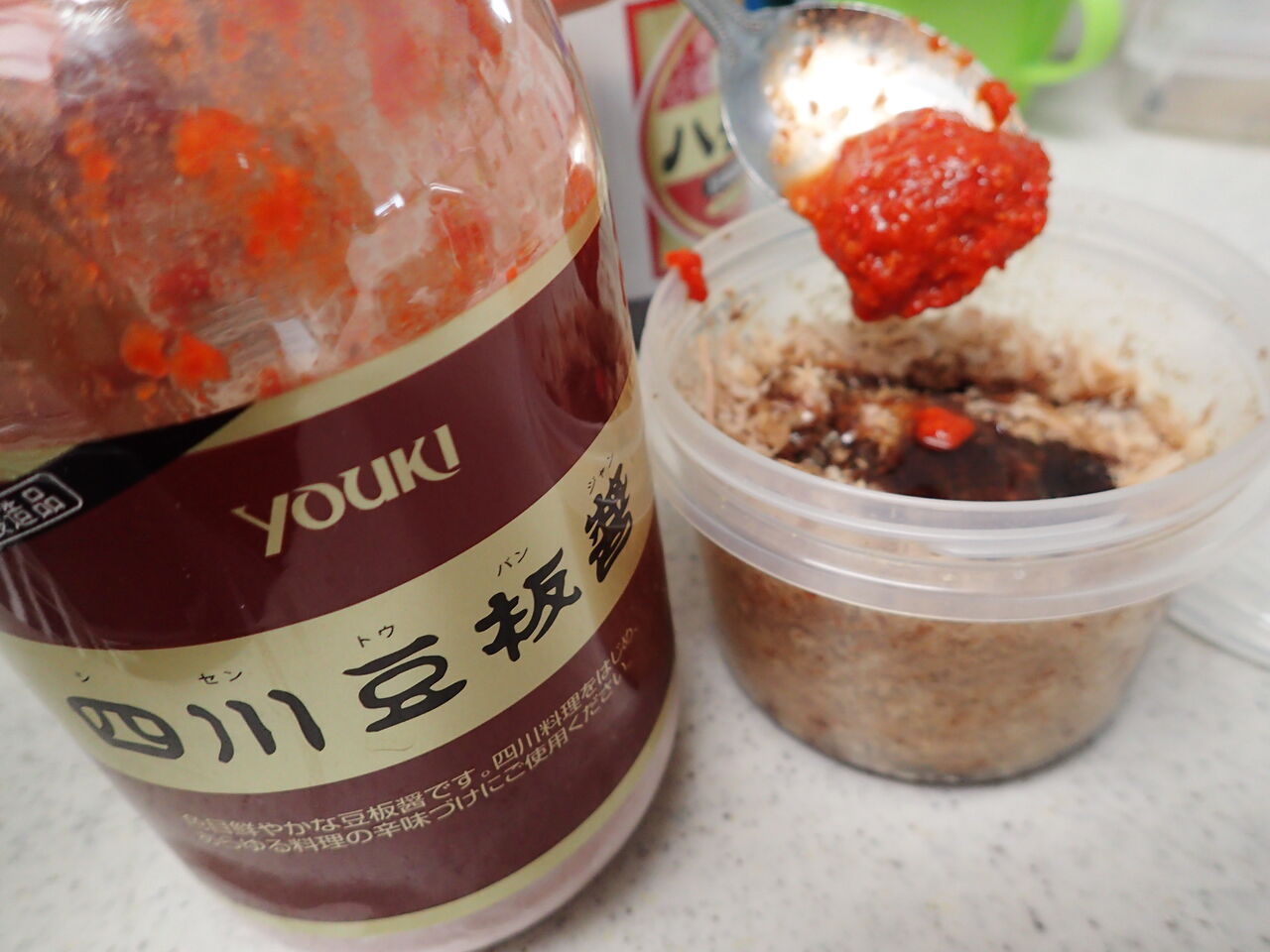 豆板醤でちゃちゃっと作った即席スイートチリソースと共に