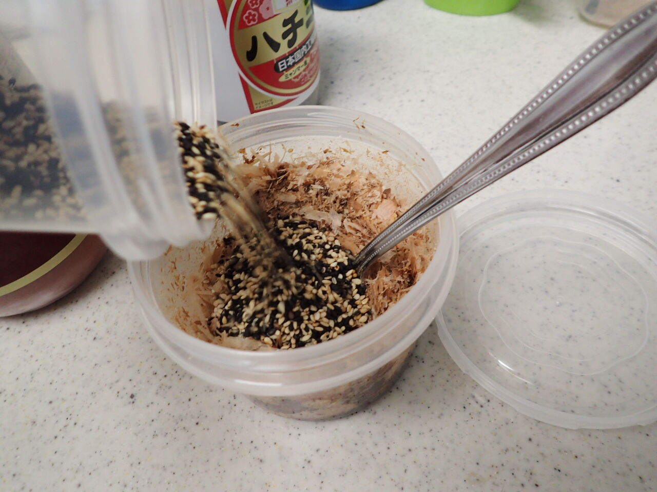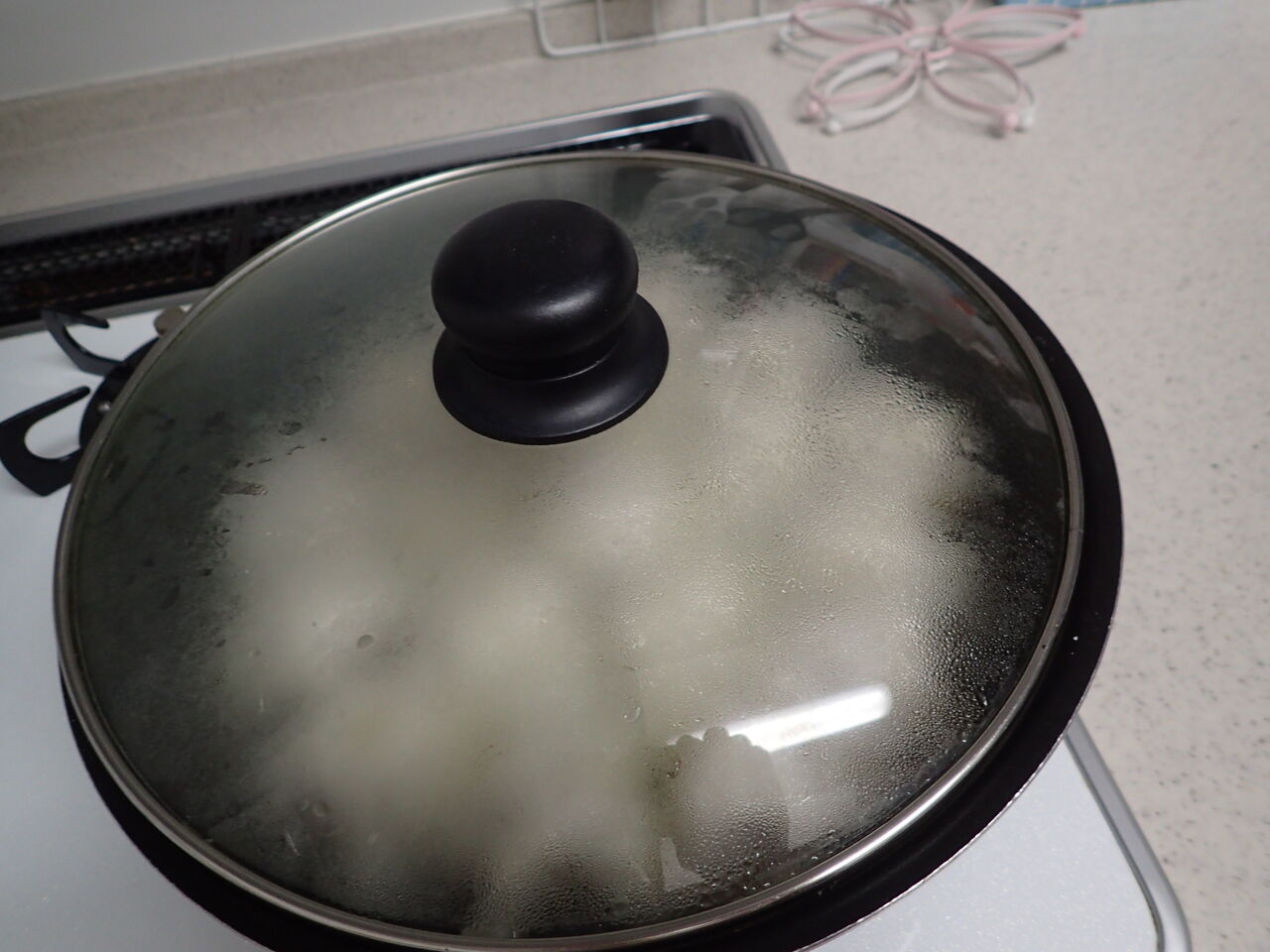 炊飯器に入れて熱湯をかける