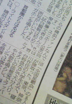 我々星覇会も特集されていました。しゅん君のインタビューもあり、写真には載せきれないので一部抜粋します。『やまぐちしゅん団長は劣性にも「最後まであきらめません」と声をからしていた。』大分合同新聞さん、取材ありがとうございました。