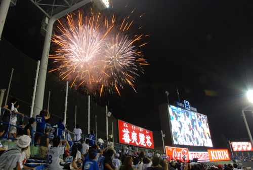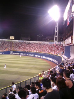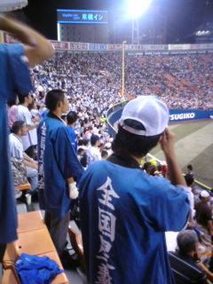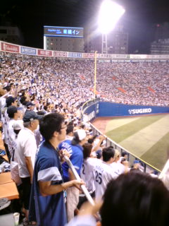 内川選手が2打席連続タイムリーを放ち、東横線内で目撃情報があるジョンソン選手がこのカード3本目となる一発をライトスタンドへぶち込み、大いに盛り上がったレフトスタンドですが…