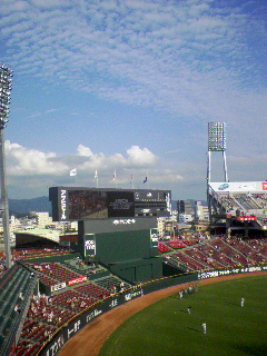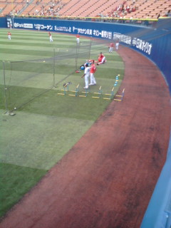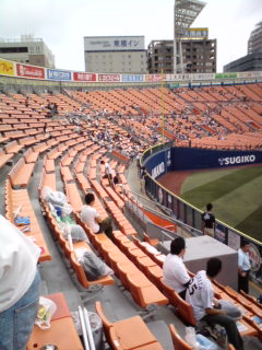 中止の可能性が高い天気事情と選挙の影響もあり開門後から閑散としてるハマスタ夏休み最後の日曜。私は開門後、しばらくドラクエのすれ違い通信してました。笑
