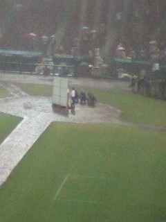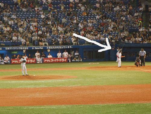 中止の可能性が高い天気事情と選挙の影響もあり開門後から閑散としてるハマスタ夏休み最後の日曜。私は開門後、しばらくドラクエのすれ違い通信してました。笑案の定・・・