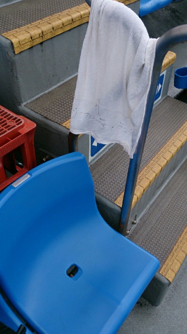 本人から「豪快な旗振りの様子」として送られてきた写真ですが、撮影技術が著しく不足している関係で、未確認飛行物体に吸い込まれる応援団員のようになっている点をお詫び致します。