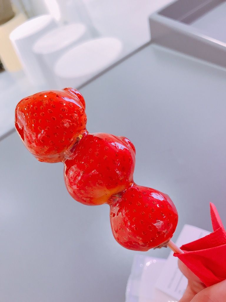 厳選したイチゴにパリッとおいしい薄付きのアメ![]()