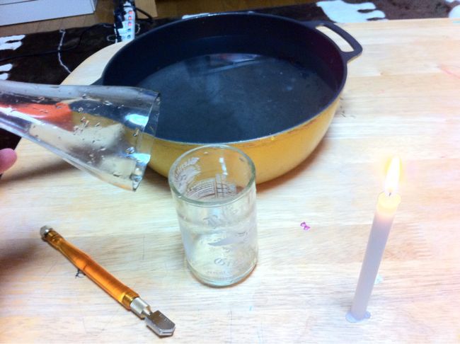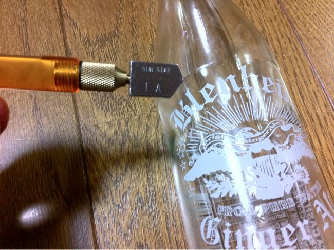 ②位置を決めたら、ガラス切りで一周キレイにキズをつけます。