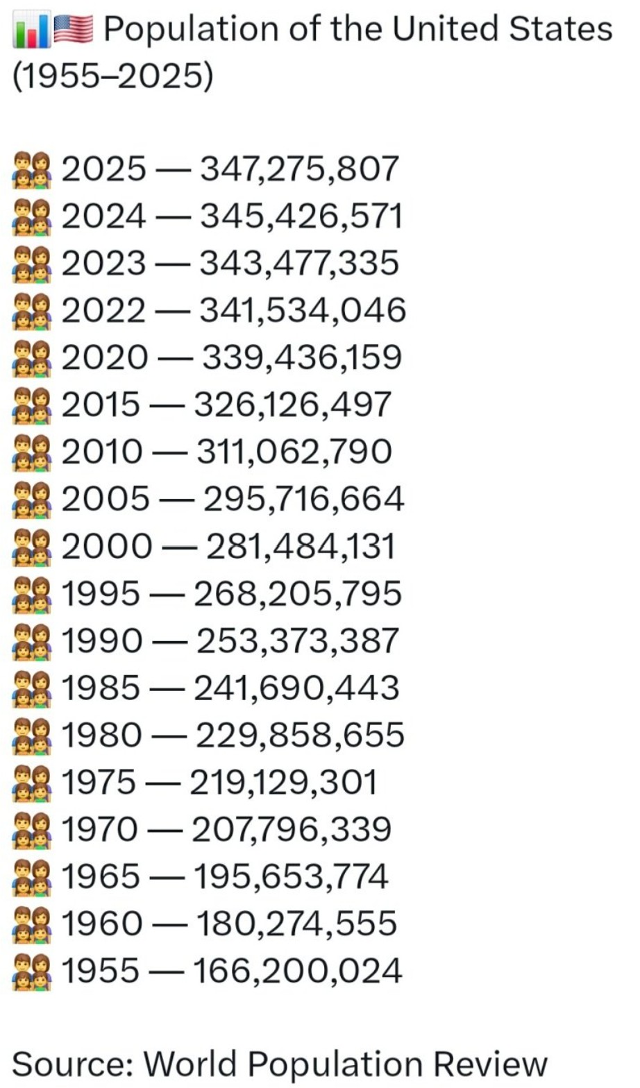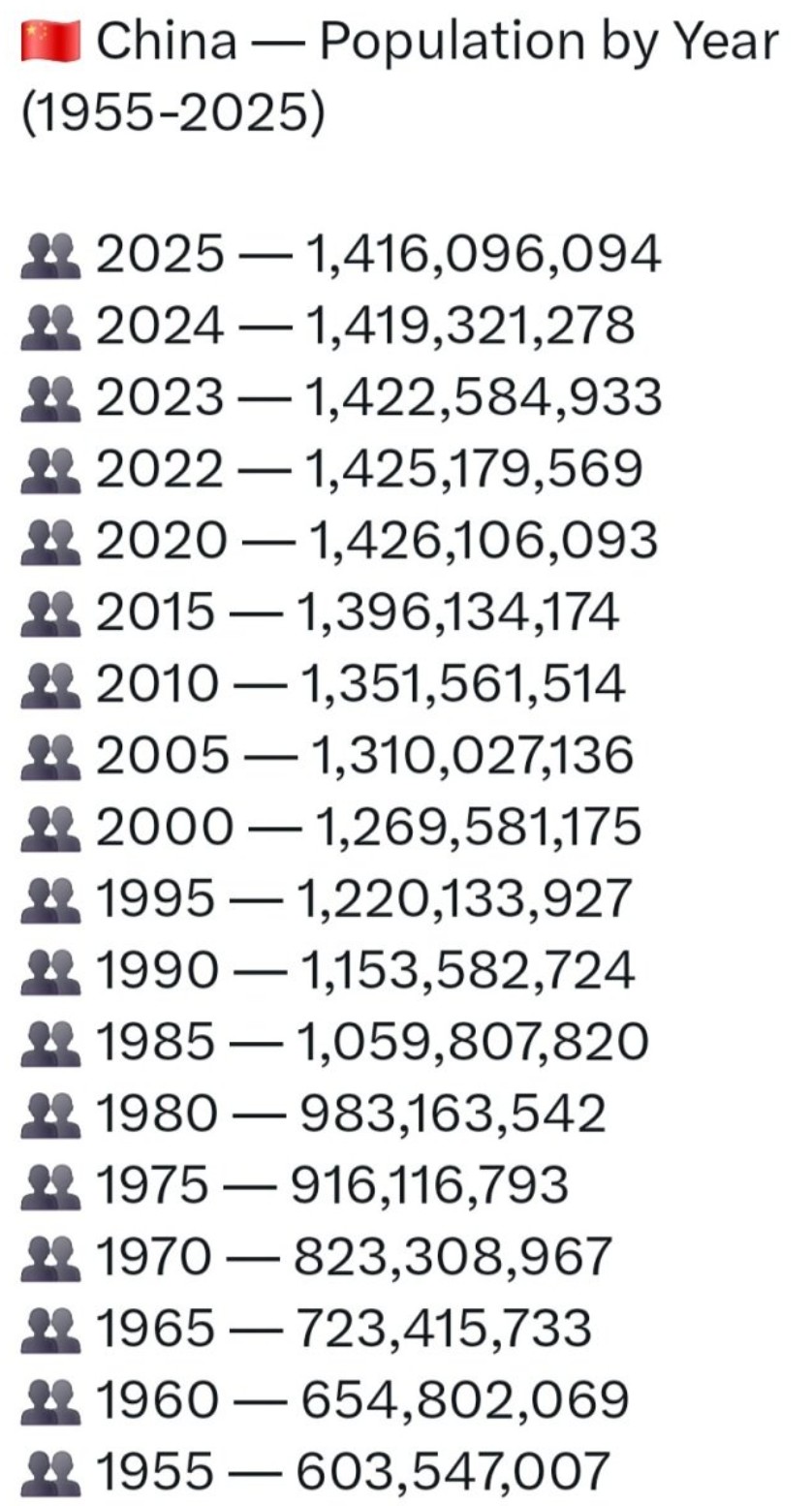 投稿者は、各国の統計をもとに1950年代から現在までの人口推移をまとめたもので、数字の変化からそれぞれの社会構造や時代背景の違いが読み取れると話題になった。