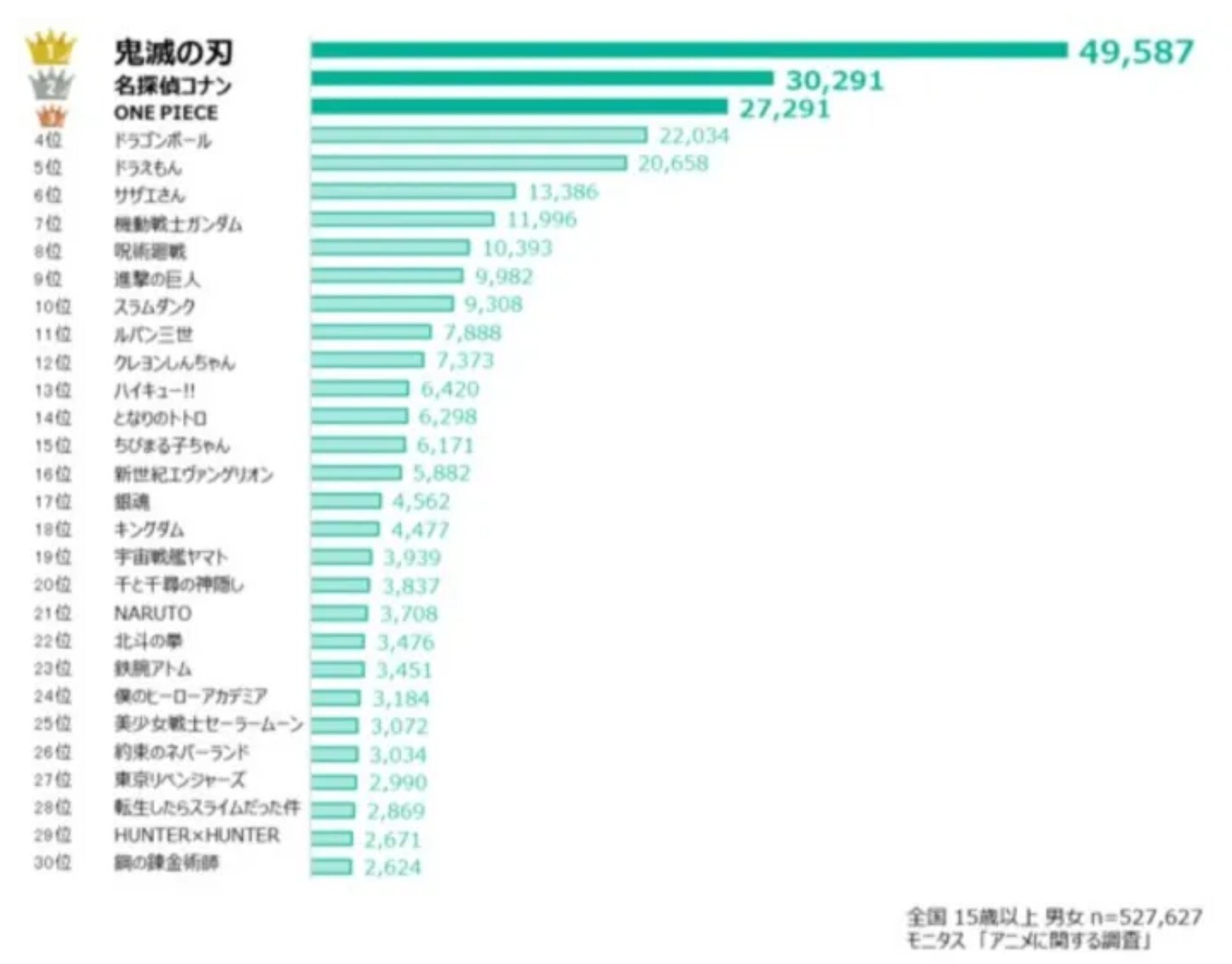 今回の調査は全国15歳以上の男女52万人を対象に行われたもので、人気作品の傾向が非常に明確に表れたランキングとして注目されています。