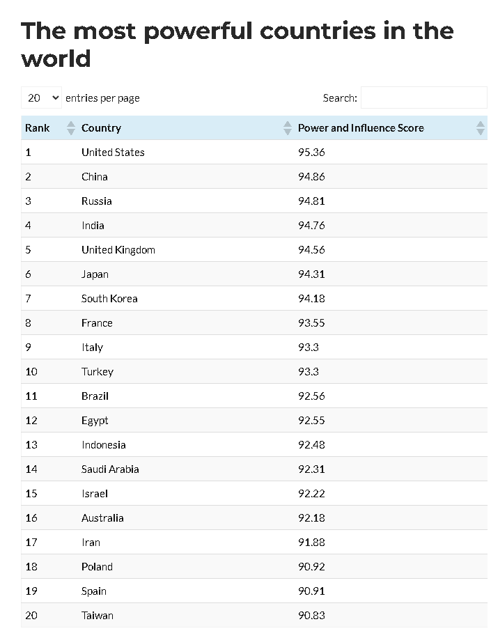 この調査は、政治的安定性、経済的影響力、国防予算、軍事力、国際同盟、文化的影響力(ソフトパワー)など、多角的な指標に基づいて世界190カ国をランク付けしたものです。その結果、日本が6位、韓国が7位という、アジアの二大国が肩を並べて上位に食い込む結果となりました。