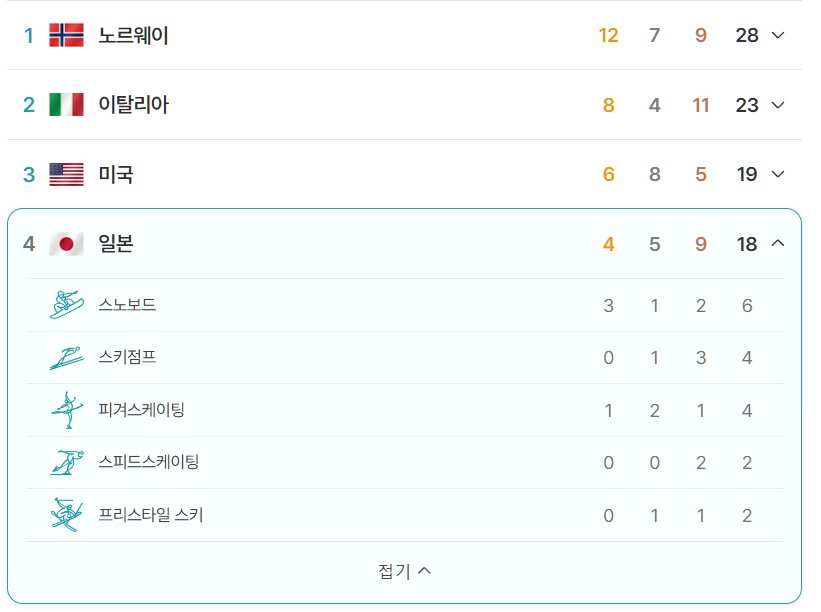 韓国のネット掲示板では、特定の競技(ショートトラックなど)にメダルが集中しがちな自国と、スノーボード、フィギュアスケート、スキージャンプ、スピードスケートなど、多種多様な競技で表彰台に上がる日本の「バランスの良さ」に注目が集まっています。