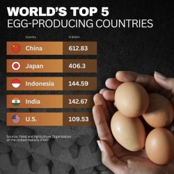 韓国人「世界5大卵生産国に日本がランクイン!『世界の卵生産量ランキング』で日本の卵生産量がアメリカやインドネシアより多い事実に韓国人が衝撃!」→「ガチで異次元の数字…」
