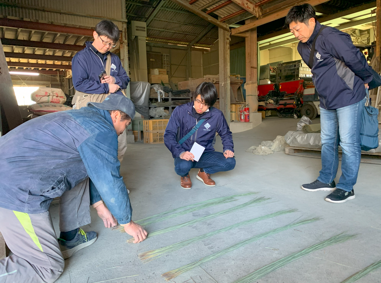 一貫して感じたことは、誰一人として半端な気持ちで取り組んでいない、ということでした。お話させいていただいた農家さんは、試行錯誤の中で何年も積み重ねてきた結果、今の出来上がった畳表があることを知りました。実際に出来上がったばかりの物をみながらお話しいただきましたが、今以上に品質を高めるためにはどうするかと先を見据えて行動されていました。