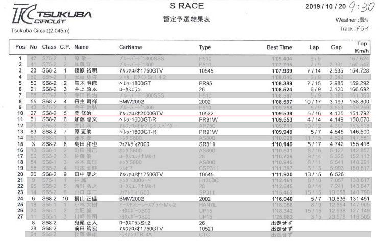今回の予選も20分間と長いのは、昨年同様、参加台数が30台と多いからでしょう…(^-^)