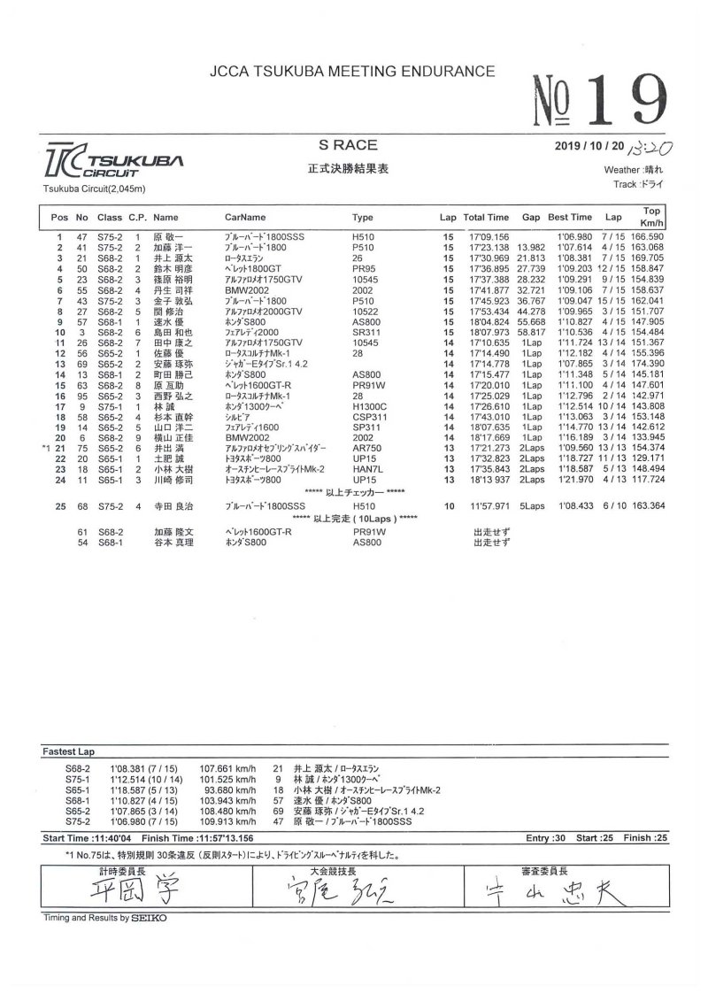決勝は、スタートで1つ順位を上げたが、中盤に抜き返され、他クラス車がスピンしたりリタイヤしたり、最終的にはポジションは2つ上がったが、クラス順位に変動なく終了…(^^;
