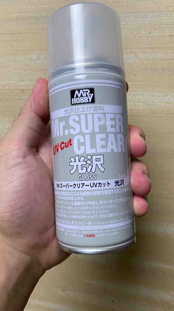 今回私が使用したのはツヤありとなる『Mr.スーパークリアUVカット 光沢』を使用しております。今後の運転会等で外で走らせた場合の太陽光や室内の展示中による蛍光灯の紫外線による劣化を防ぐことを目的としております。