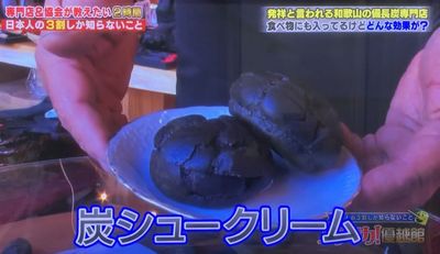 炭シュークリームの紹介では、スタジオのゲストも試食