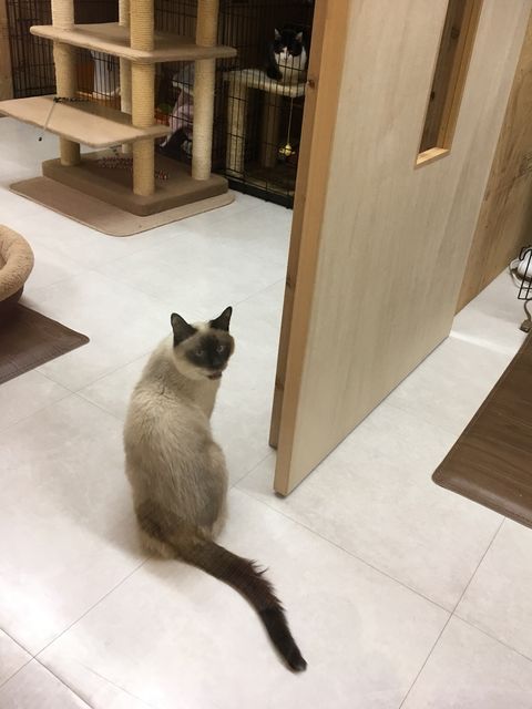 背を向けていたエアちゃん、ふりかえってガン見