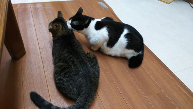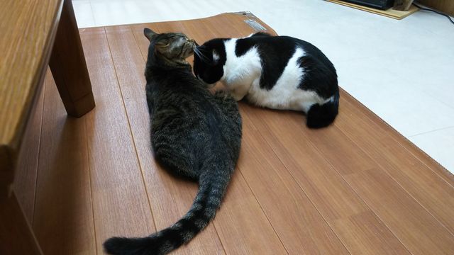 省やんの頭を、グルーミングしてあげるエアちゃん