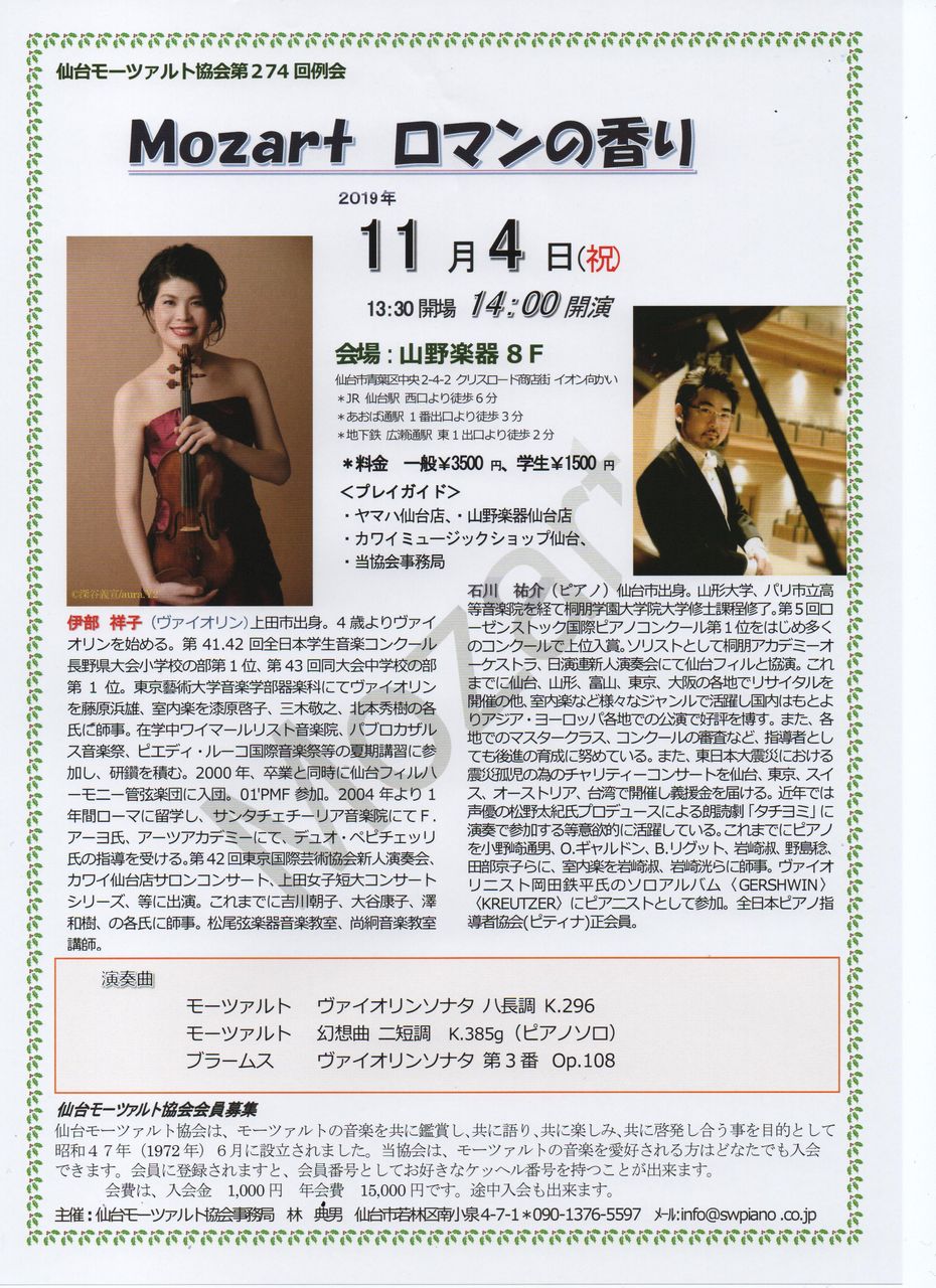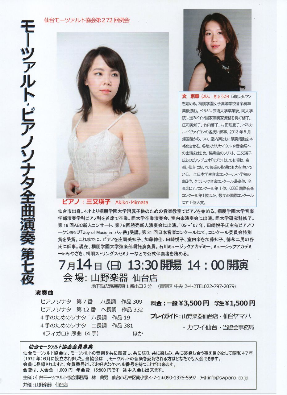 Mozart 263回目の誕生日カワイ仙台で例会開催。演奏