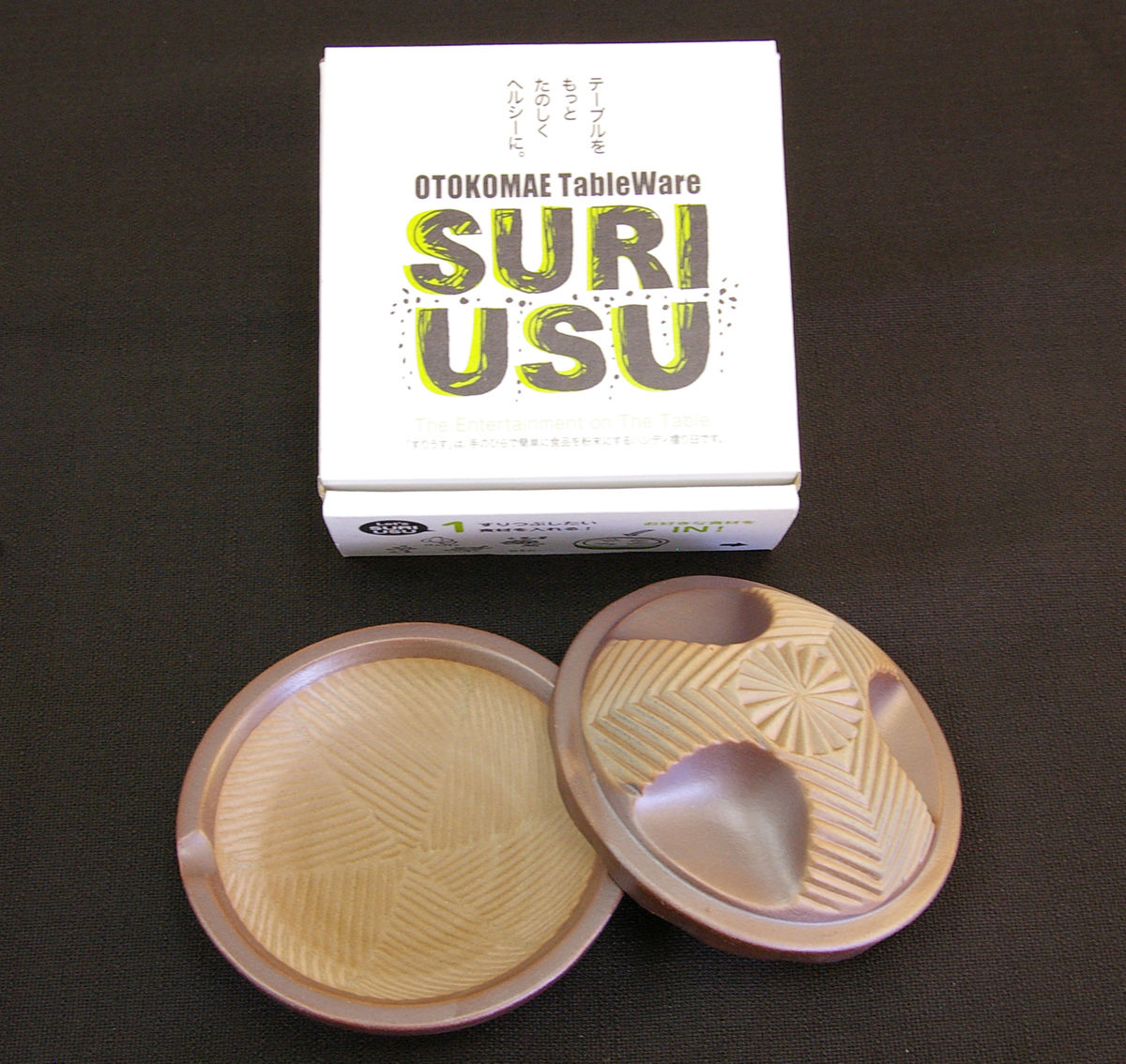 2014年09月22日 すりうす ハイブリッド胡麻すり器なので「すりうす」と呼びます。陶器の両面ですりますので、あっという間に香りが良いすり胡麻を作ることができます。先日長浜店で発売したところ、品名はまた社長が考えたでしょう?と皆さんから言われてしまいました。これは、大学の後輩が美濃焼の窯元をしていて発案し命名したものなのです。ご縁あってうちでも売ることになりました。でも、同じ大学なので、頭の構造は似ているかもしれません。
