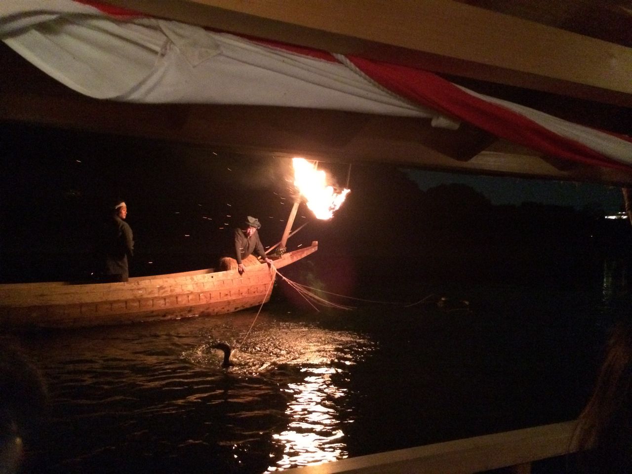 2014年09月18日 長良川の鵜飼 先日、高校時代の友人で観覧船を一艘借り切り「長良川の鵜飼」を鑑賞しました。この年で、初めての経験です。ぱちぱちと燃える篝火のもと、鮎獲りに集中する鵜匠さんと、鵜の姿はとても幻想的でした。友人が下見までして用意してくれた仕出し弁当をいただき、お酒を飲んで、しばし秋の豊かな一時を過ごしました。かつての岐阜城主、織田信長公もきっと同じ気分だったに違いない。