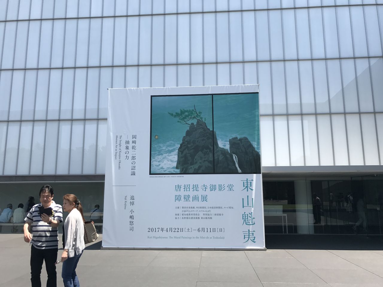 2017年05月25日 唐招提寺御影堂障壁画 豊田市美術館の企画展「東山魁夷、唐招提寺御影堂障壁画」を鑑賞してきました!いつか必ず見てみたい絵でした。奈良まで行かずに念願がかない、感動でした!まるで蛍光塗料を使ったような海の絵に圧倒されました。まず、この襖絵を見るには、鑑真和尚について勉強する必要があります。入口を抜けるとすぐに功績の説明書きがあり、これをゆっくり読みます。すると、この絵がただの秀作ではなく、鑑真和尚の為に描かれたものであるということがよくわかります。実物の「山雲」にも絶句しました。出口の売店では高額な複製画がたくさん売れていました。私も家に飾りたい!