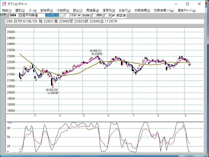 38番線とストキャスティクスの両線が上に張り付く手前まで