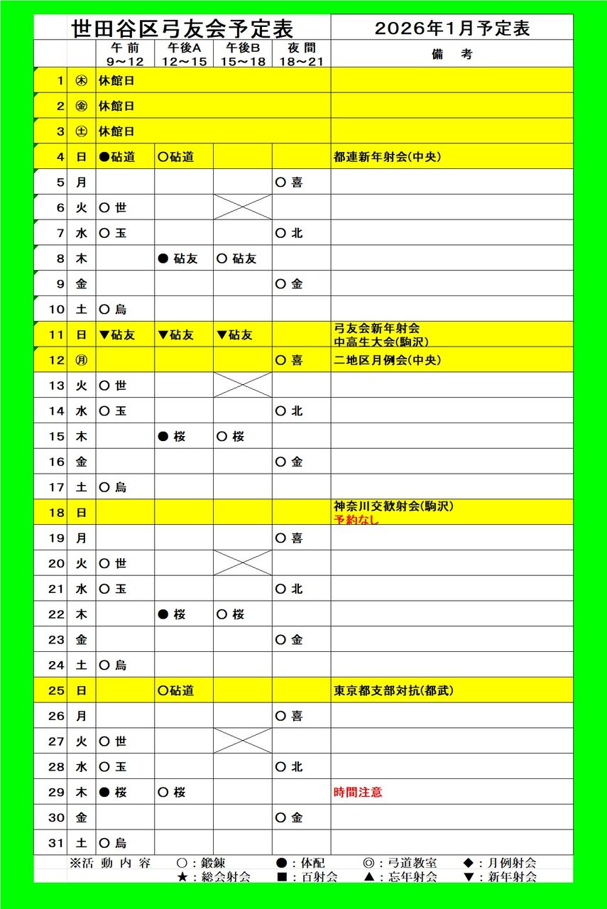 活動予定 世田谷区弓友会 東京都弓道連盟第二地区砧支部