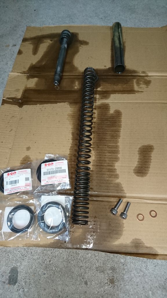 フロントフォーク自体の構造は正立式で、レーサーHonda VT Spadaと構造は略一緒ですのでサクサクと交換出来るでしょう
