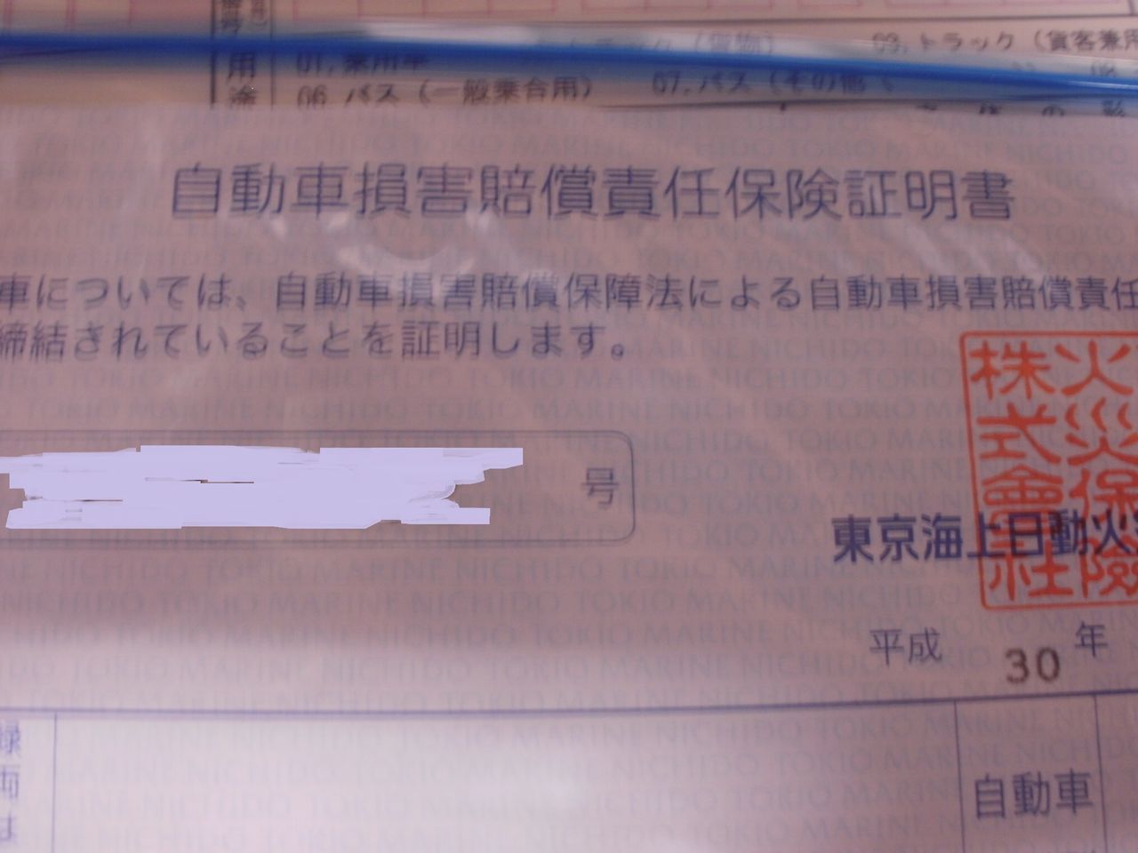 自賠責保険証書 申請者加入(私はコンビニ)二年加入で¥12.220-
