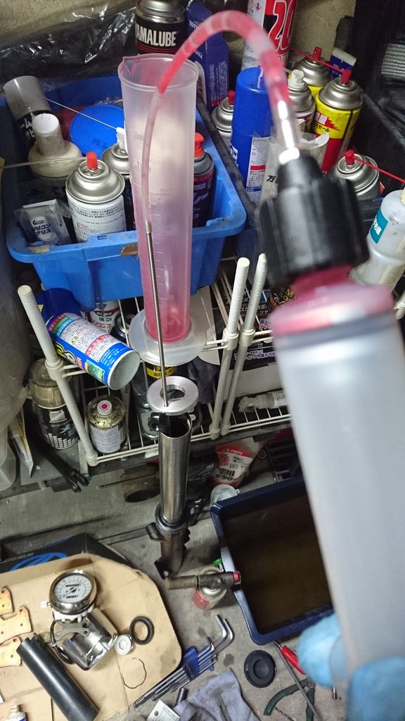 フォークオイルはガレージに余っていたHONDA 10番