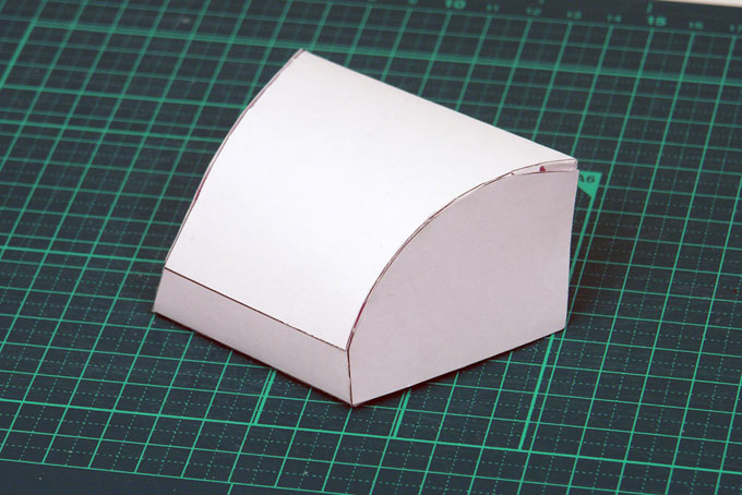 一番複雑な箇所を極力単純化してみました。つまり3次曲面を無くすということ。3次曲面をオミットすると別物になるような気もしますが、逆手にとってポリゴン風でペーパークラフトらしくかっこ良くなることがあります。なるように調整します。なるだろう。なるかもしれない。なったらいいな。