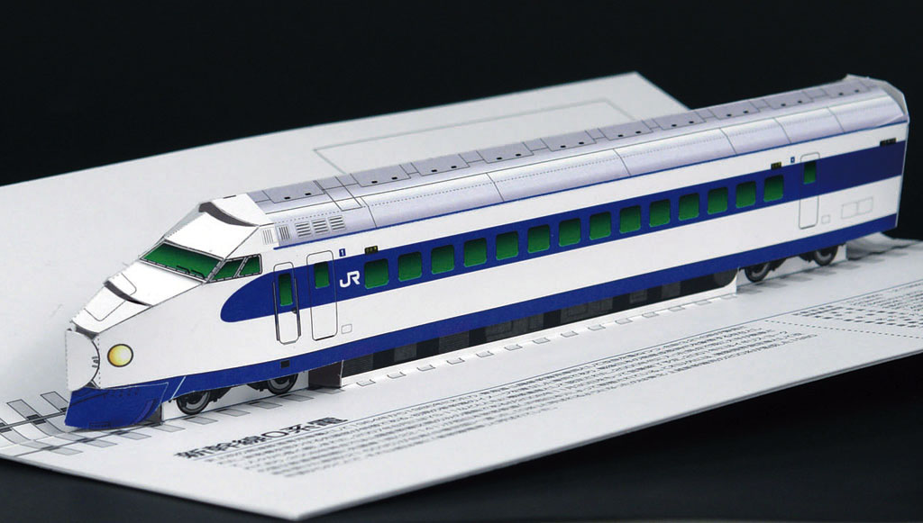 実は0系新幹線が引退した記念に、仕事にならないかと思い、POP-UPカードを試作したことがあります。(いろいろあって実現はしなかったのですが、そのアイデアを使い、かなり簡略化したものを阪急電鉄さんで使用したことがあります。)