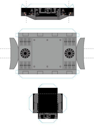 その時のデータがもったいないので今回、ペーパークラフト化することにしました。ぺちゃんこになる物とペーパークラフトではコンセプトが違うので型紙はまったく作りなおしです。そして試作段階のデータなので、描き込みも中途半端なので、さらに精密に描き込んでいきます。