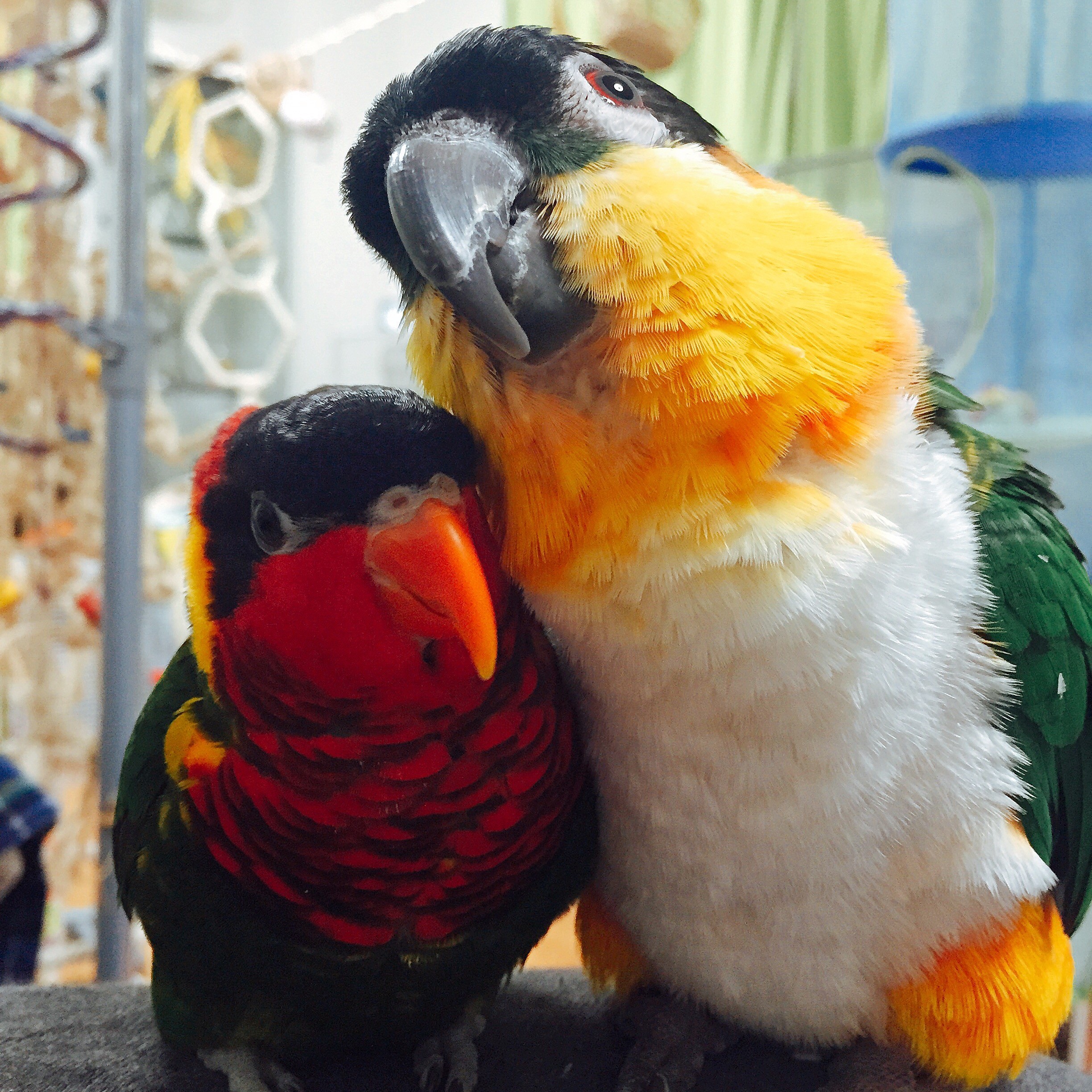 ローリーも他のインコと同じく、求愛行動で飼い主やおもちゃなどに吐き戻しをする子はいるけど、鳥相手にプレゼントしているところは初めて見たので驚いた。