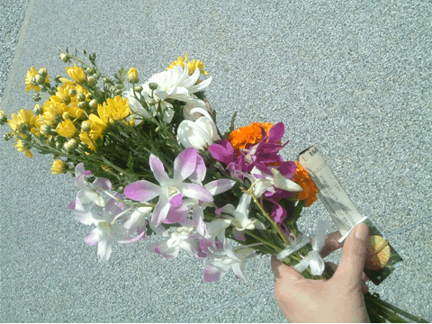 「売店でお花を購入します。手にしているのは、沖縄のお線香です」