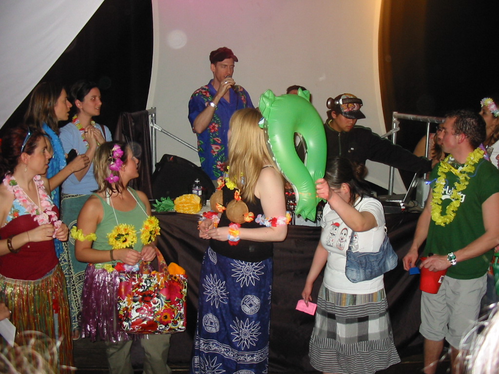 4月5日。この日はダウンタウンのナイトクラブを貸し切って、学校主催のダンスパーディがありました。その名もビーチパーティ!もちろんまだコートが必要なくらい寒かったけど、なぜかそうネーミングされていて、参加者はサングラスをするとかビーチサンダルを履くとか、アロハシャツやTシャツを着るとか、何か夏っぽい格好で参加するのです。