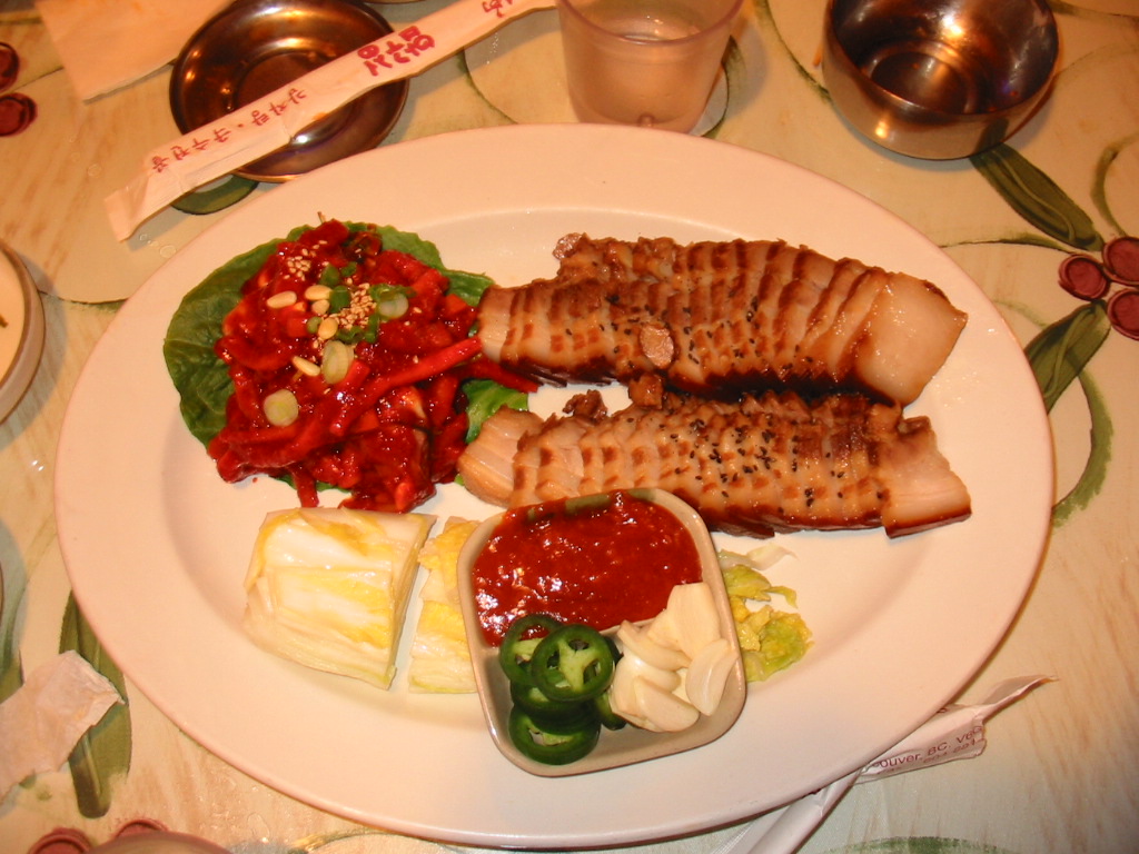 左の写真は海鮮キムチ鍋、右の写真は茹でた豚をキムチと一緒に茹でた白菜に包んで食べる料理(ポッサム)です。鍋の方は蟹の出汁がたっぷり出ていて、本当においしい!何度でも食べに行きたくなる味でした。本当はカナダじゃなくて韓国に行ってたんじゃないかと思われそうだな。汗